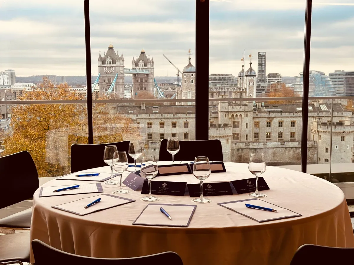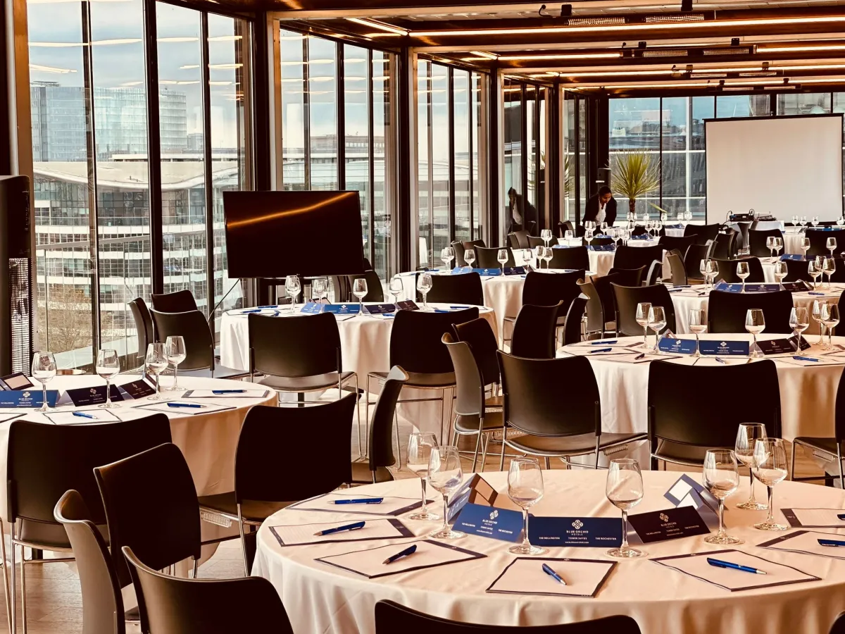 Welcome tea and coffee with biscuits, A seated three-course lunch with wine, still or sparkling water, tea and coffee, Keynote and fireside conversations, Curated table experience alongside Legacy Leader Partners, Mezzanine area used as a cloakroom